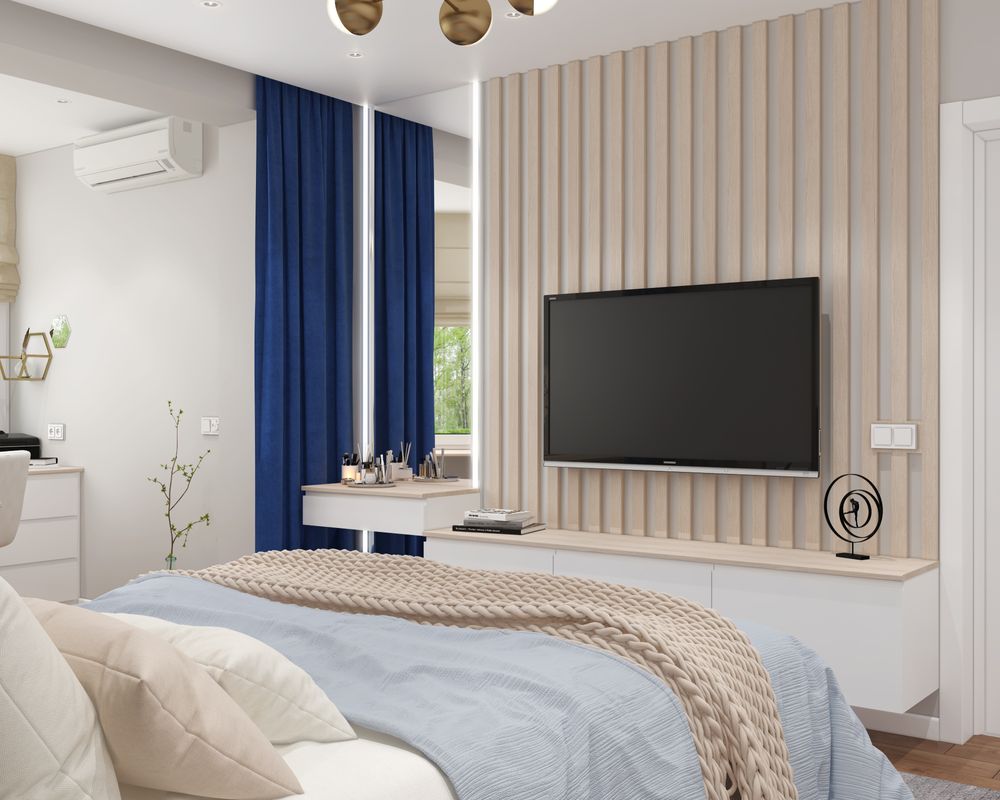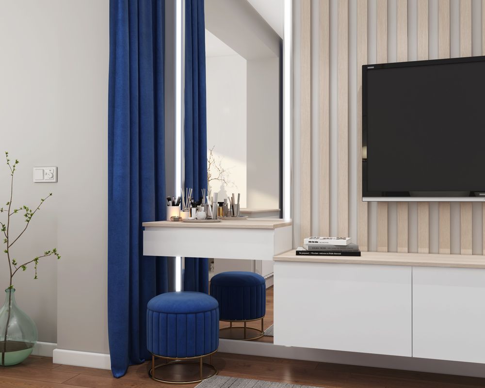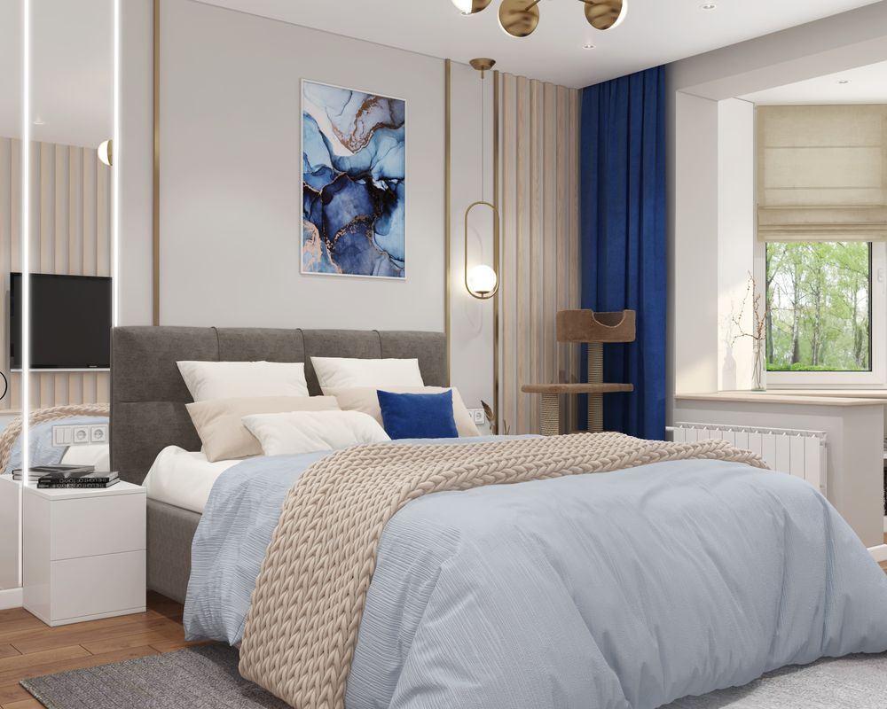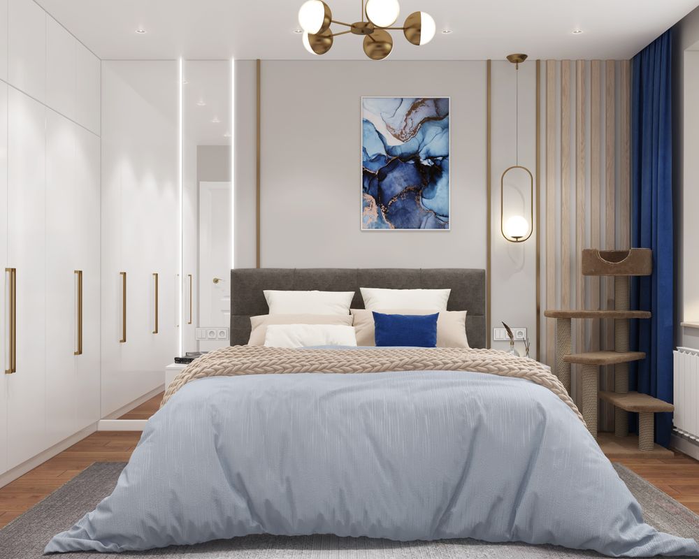 Обязательным условием от заказчиков было расположить в спальне кошачий домик, который у них уже был) Что ж, любимца мы тоже не обидели!