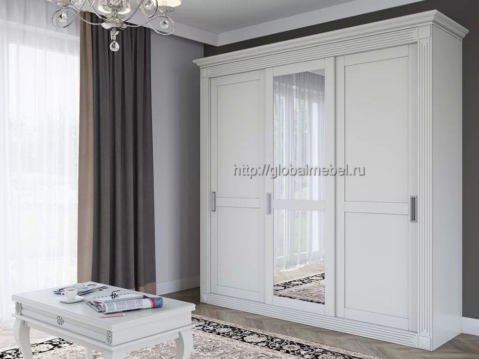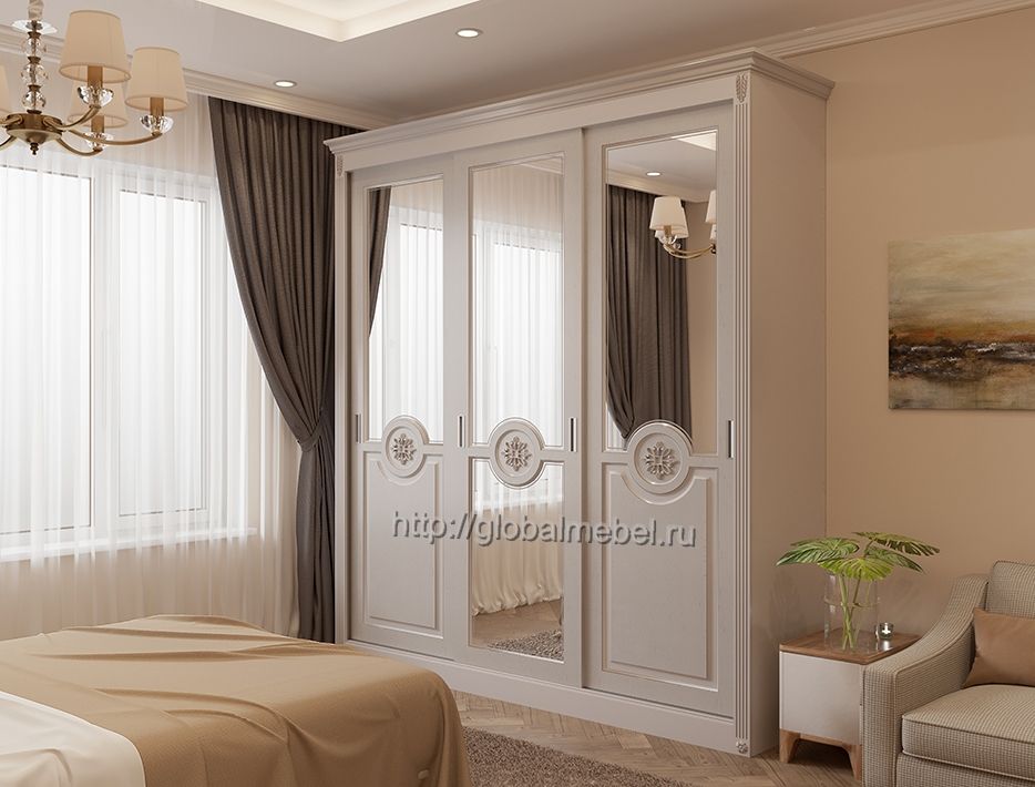 Шкаф-купе Милан Крем Ажур эмаль в классическом стиле с фасадами из МДФ под эмалью, окраска в любой цвет. Размеры: ширина 1,8*высота 2,2*глубина 0,65 м, стоимость от 248200 рублей, можно выбрать другие габариты.