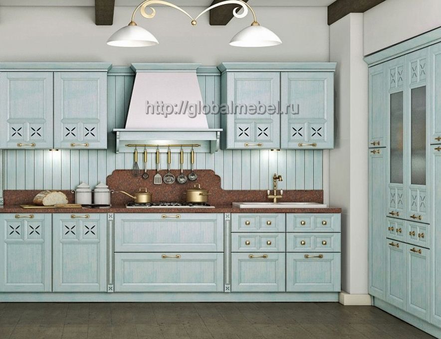 Кухня Прованс Дуб синий с российскими фасадами из дерева, цвет Сиена: длина 3,4*2 м, стоимость 472658 р. Окраска в любой цвет.