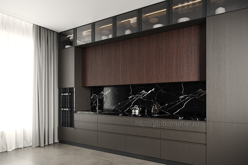 Кухня G 512 из МДФ эмаль и шпона Fine-Line в декоре "Эбеновое дерево": длина 4,95 м, стоимость 320470 р.