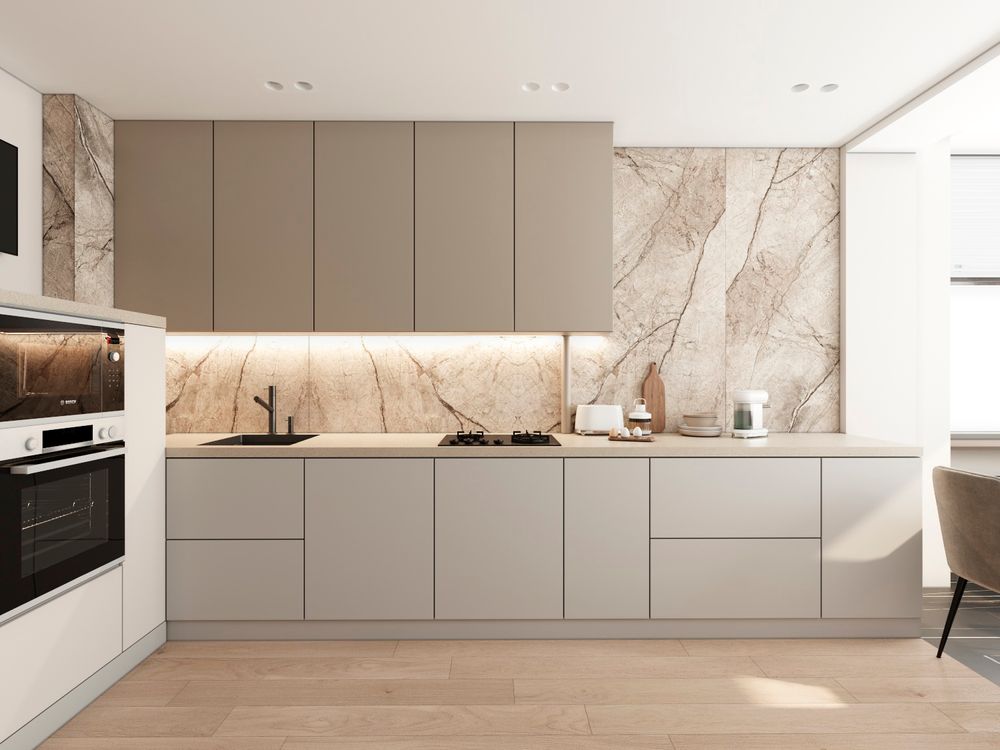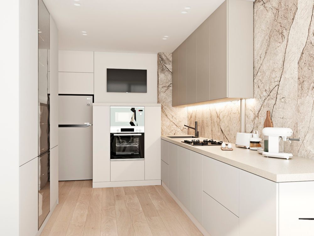 Вообще изначально у заказчиков был запрос на сохранение максимально кухни-это корпусов , столешницы , фурнитуры