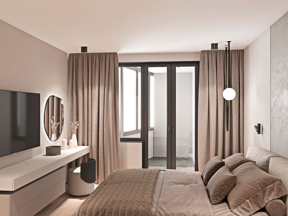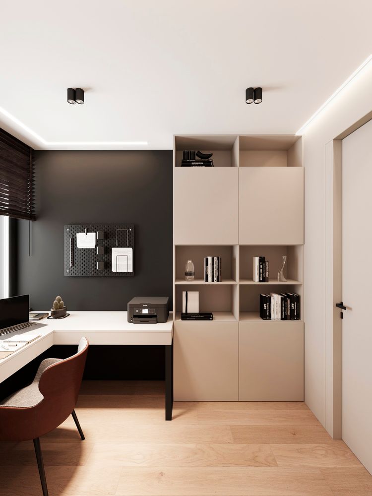 Одно из главных изменений в планировочном решении это было в спальне выделить рабочий кабинет или место .