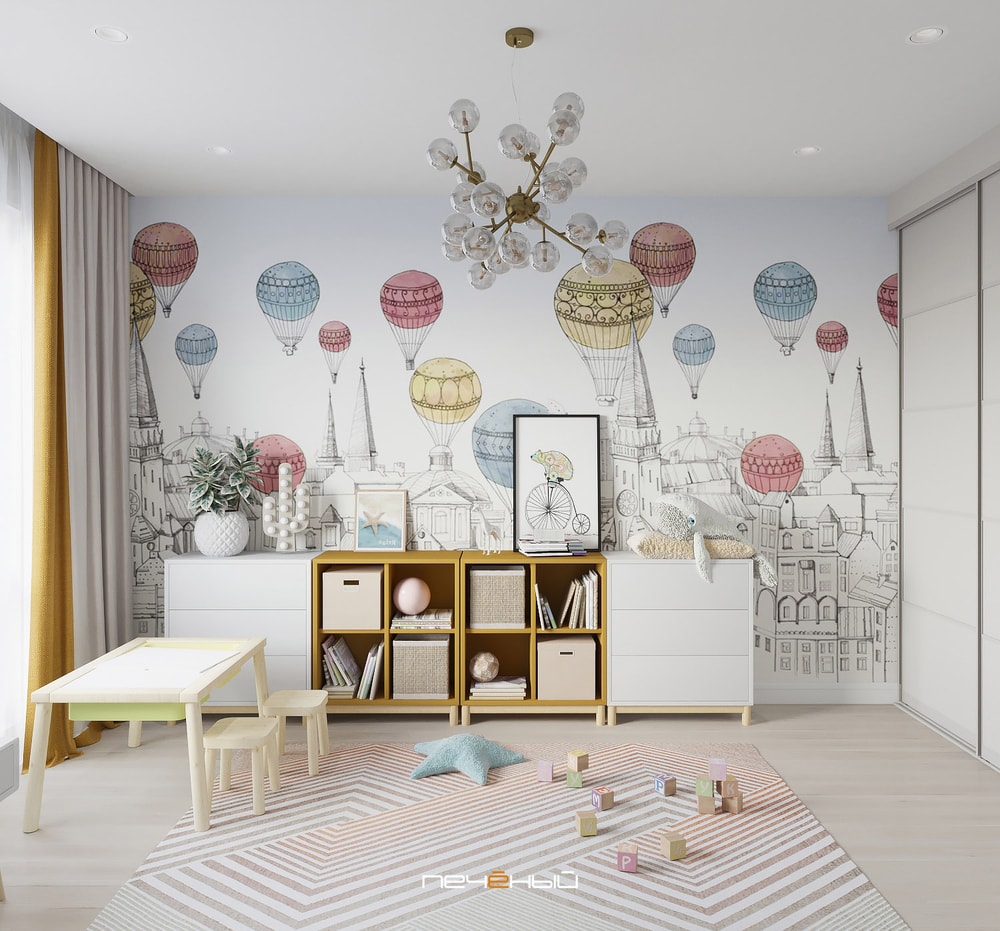 Обои с мишками? Они быстро надоедят. А вот однотонные стены + постеры, картины, светильники, гирлянды — можно менять хоть каждый год. Комната остаётся той же, а ощущение — новое.