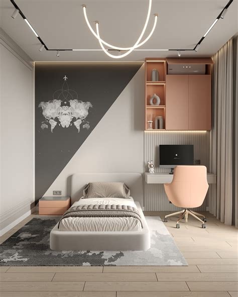 Современный нейтральный интерьер со встроенными зонами для сна и учебы — многофункциональность и стиль.