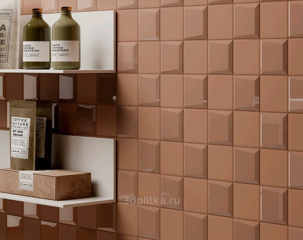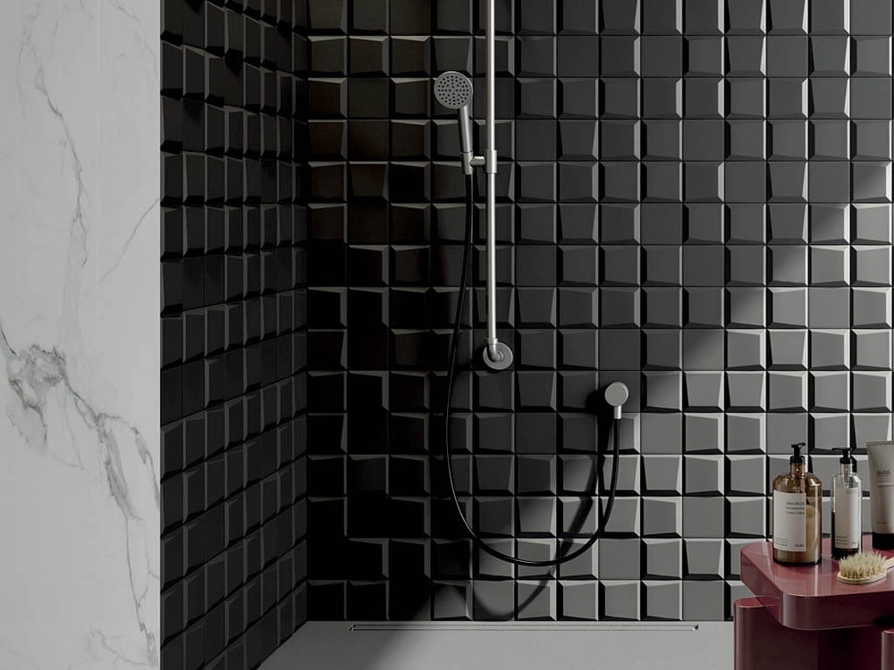 Интерьерное решение ванной комнатыЕсть идея, сделать одну стену с плиткой которая как бы выпирает гранями, но вопрос, насколько она практична, надо ли её протирать, из-за скопления пыли или налёта?