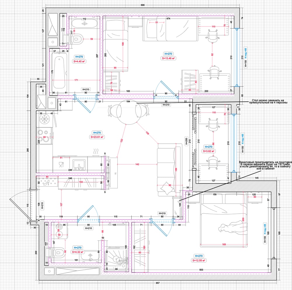 Прикладываю сами планировки. На них указаны доп. комментарии по некоторым местам.