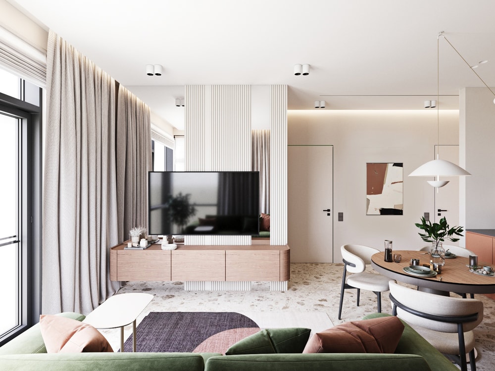 Авторские проекты дизайнеров.(Посты не по теме будут удаляться!)Сегодня покажу квартиру с панорамными окнами и отличными видовыми характеристиками , квартира для семьи из 3х человек .