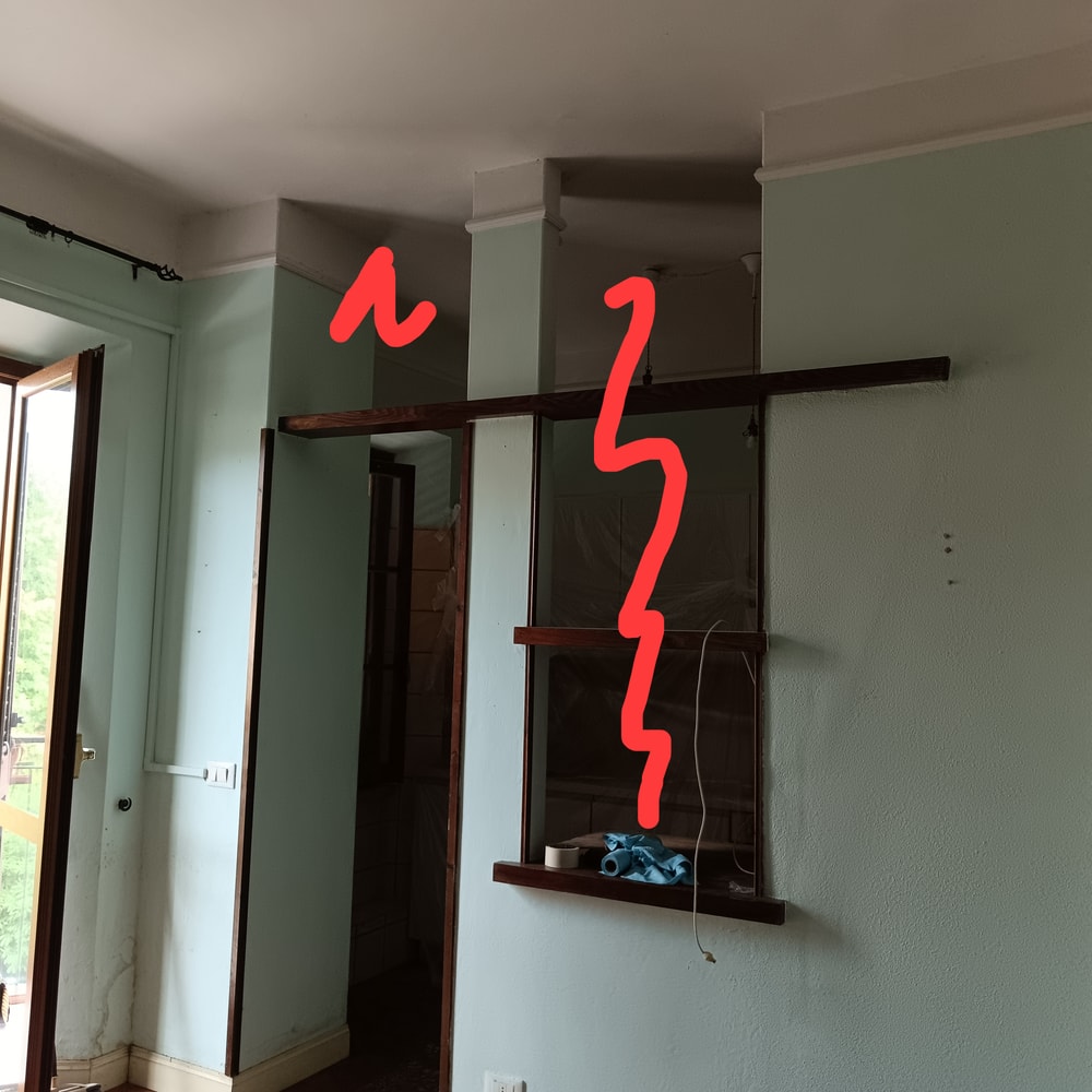 Интересная постройка. Я бы верх выравнила,а на место "окна" повесила бы картину или зеркало(естесственно заделав дыру перед этим), думала нишу,но она слишком узкая получилась бы. А в фантазиях что то вроде прямоугольной лавы-лампы,или самим светильник сообразить вставив 2 стекла и светодиойдную ленту, или типа узкого аквариума где пузыри постоянно поднимаются.