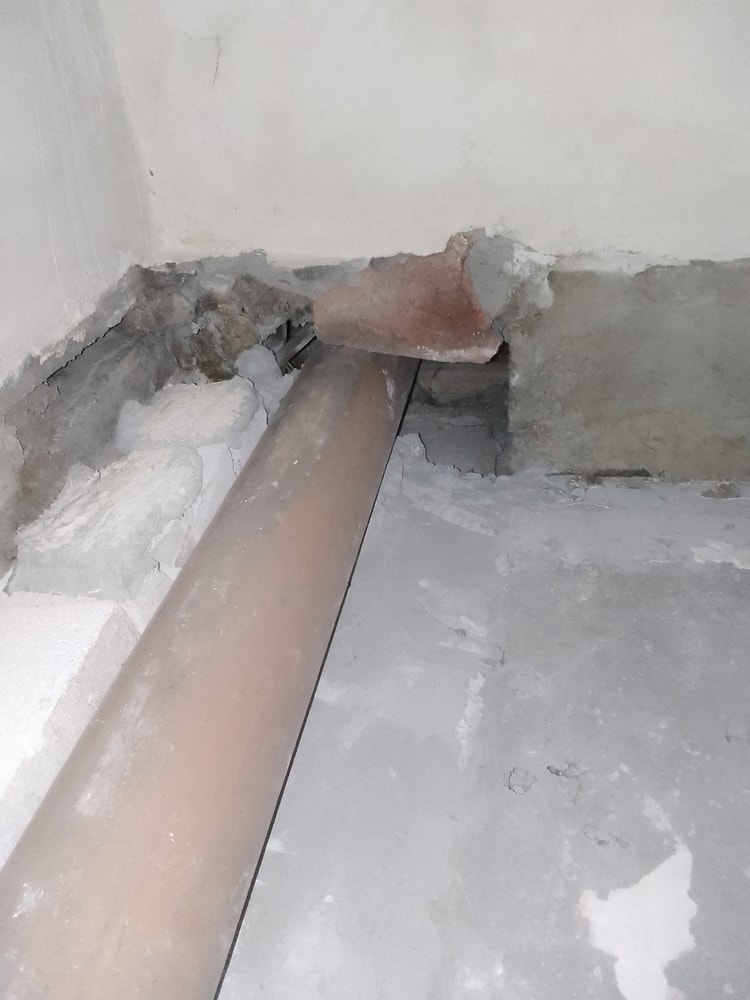 Делаю гардеробную, под свою ответственность подснесла толщину межквартирной стены (соседняя квартира тоже моя). На фото - уже возвела половину новой перегородки. Обнаружилась старая ливневка. Я знала о её существовании, но думала, что она как раз в соседней квартире. Она не функционирует, сейчас у дома есть новая ливневка - инфа от УК. Да, новая ливневка в тамбуре, и она шумит в дождь, эта труба молчит. Сначала планировала сделать гардеробную в стиле Лофт, трубу покрасить и оставить арт-объектом. Но теперь поняла, что от неё дует - наверху дыра.