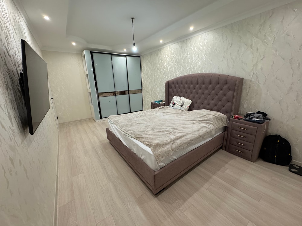 В цвет кровати, но чуть светлее по оттенку можно, не настолько тёмные. В цвет стен тоже не понимаю шторы, коробка без окон получается.. Только если уже есть акцентная стена, можно, наверно.. а так бязательно нужно выделить зону окон.