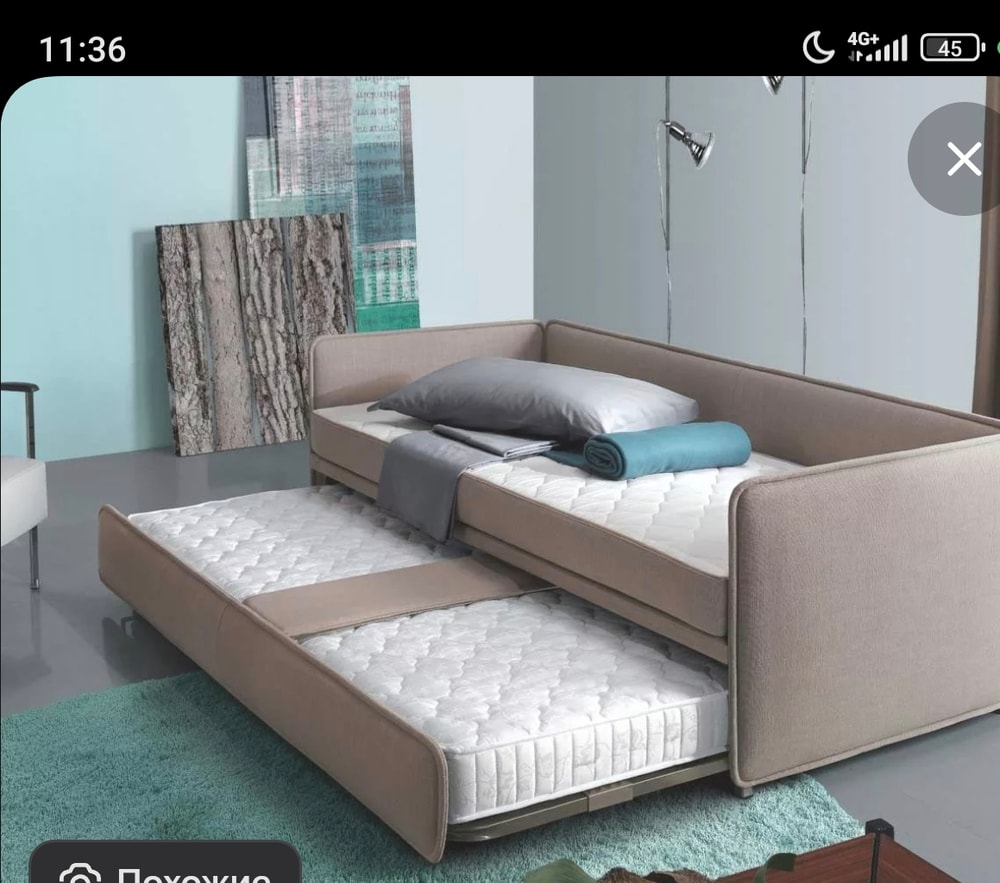 Мне нужно чтобы внешне как просто диван 200см/100 см был, но выдвигалась кровать снизу при этом чтобы был у нее подголовник какой-нибудь выдвижной? Ну и в идеале чтобы она приподнималась от пола. И КОНЕЧНО ОНИ БУДУТ СТОЯТЬ КАЖДАЯ У СВОЕЙ СТЕНЫ КАК НА КАРТИНКЕ, ГЛЕ ХПЧЕРКНУТА КРОВАТЬ.