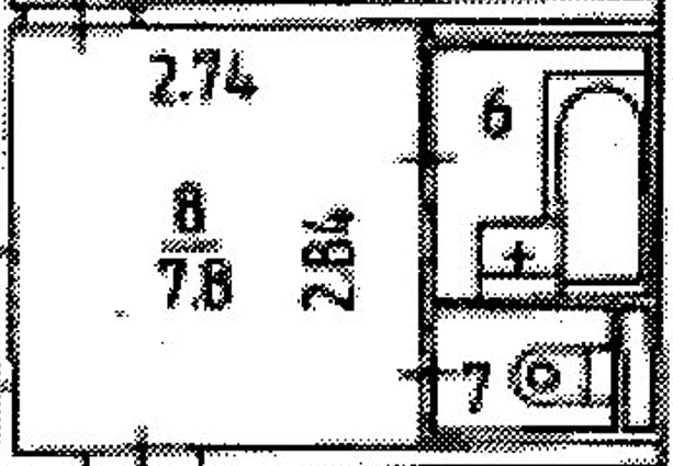 Душевая 6 метров. Сейчас стоит ванна. Бабушка просит душ. Тяжело ей залазить. Я конечно душ совсем не хочу, в нем не полежишь, но что поделать... В углу у цифры "6" стоит стиралка. Крестик - раковина.