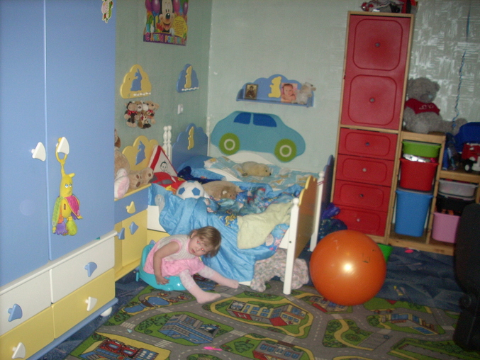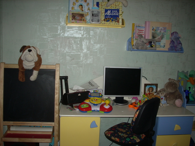 Очень надеемся, что в ближайшем будущем все же решим свой квартирный вопрос, и тогда уже комнату дополним ярким диванчиком, мохнатым ковром и теликом на стене.))