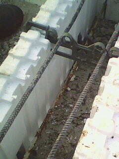 Вот так и строим как конструктор. Ряда 3 поставим, выравниваем, арматуру ложим и бетоном заливаем. Пока на другой стороне возимся дня два, бетон застынет и дальше можно лить. Дети помогают. Долго изучали все варианты: сруб дёшево, но и мыши заводятся и всё равно утеплять нужно, и усадка года три. Кирпичные и шлакоблочные стены всё равно холодные и толщину нужно большую делать, у соседей только на отопление такого дома уходит 10 тыс. руб в месяц. В прошлом году мы помогли другу пристроить к дому кухню с ванной (по материнскому капиталу - на реконструкцию). Дёшево и тепло получилось: стены в полшлакоблока (20 см) плюс снаружи 10 см пенопласта, полы и крышу тоже утеплили пенопластом, стены гипсокартоном обшили. Этой зимой проверили - в пристрое теплее было чем в основном доме из сруба, обложенного кирпичём. А опалубка производится в Екатеринбурге, один блок 1200*250*300 - 250 руб стоит, зато этот материал не горит, сами проверяли, затухает моментально (а обычный плавится - год