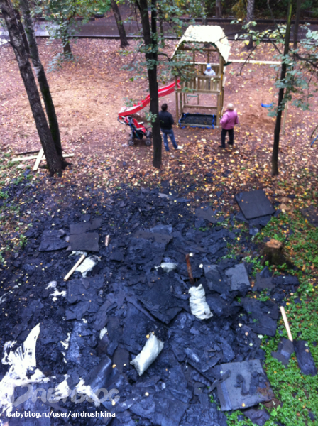 дело в том, что это уже не первый дом в нашем дворе на котором ремонтируют крыши. до этого рабочие собирали строительный мусор в мешки и вывозили, не портя палисадники. Воспользовавшись пустотой нашего палисадника (там растет только дикая земляника, газон, несколько кустов, а деревьев нет высоких) за 30 минут они поскидывали к нам все. мы даже не успели среагировать.