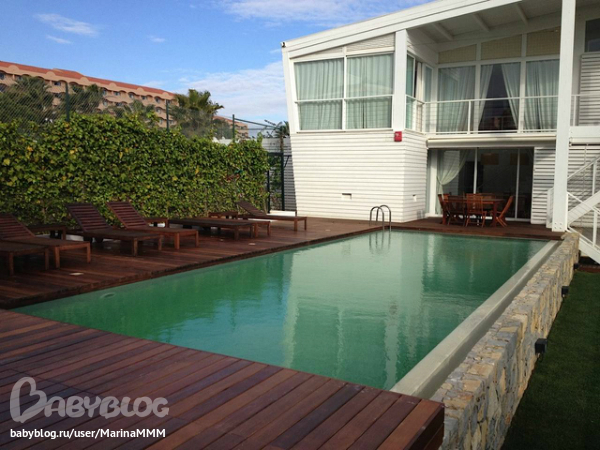 Несмотря на компактность, открытые внутренние помещения с большими окнами обеспечивают много света, в то время как современная мебель коллониального стиля, природных текстур и оттенков смешиваются с современным искусством. Внутри полы выложены древесиной и также деревянный настил окружает бассейн. На верхнем этаже расположены мезонин (над столовой) и спальня, которая имеет ванную комнату с джакузи с видом на сад и океан. На нижнем этаже, просторная игровая комната. В гостиной есть потолочные вентиляторы и кондиционирование воздуха по всей территории дома.