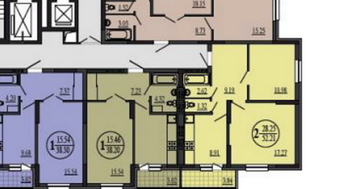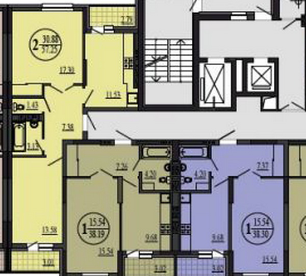 2.Тоже угловая 2х комн.квартира, подальше от лифта, балкон из кухни (отмечено желтым)