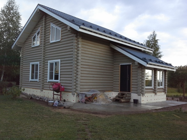 фото не самое последнее, сейчас еще вокруг фундамент декоративная дорожка из щебня и утонувших в нем досок.