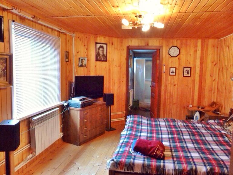 На 1 этаже - гостиная 25 кв.м., спальня 15 кв.м., кухня 8 кв.м. с примыкающей столовой 15 кв.м., ванная (умывальник, душевая кабина, туалет, биде), сауна. На 2 этаже - спальня 15 кв.м. и просторная кладовая комната. Дом оборудован охранной сигнализацией (ООО"Витязь-96"). Большой участок с лесополосой, колодец, плодовые деревья, качели, хозблок. Гараж.
