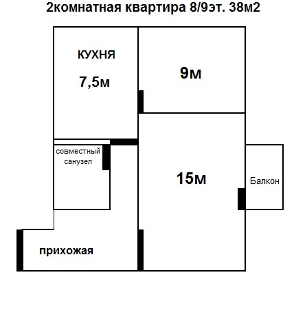 ПродамПродается 2-комнатная квартира 37,3м 8/9 блочного дома. 7 900 000р.