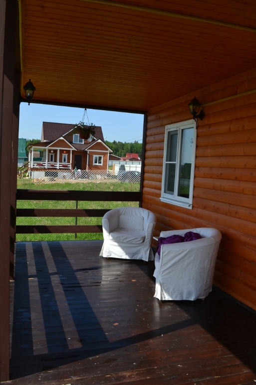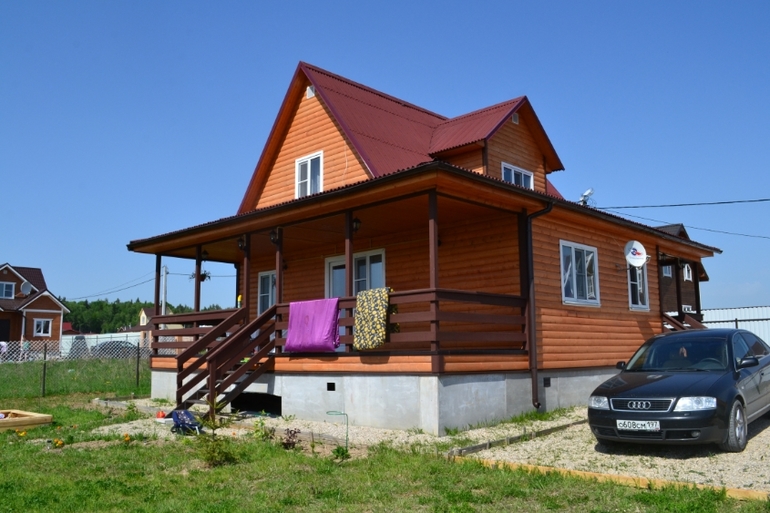 Дом каркасный, строили для себя на совесть, очень теплый, приезжали всю зиму с маленьким ребенком. Участок огорожен по периметру профлистом (лицо) и сеткой-рабицей (с 3 сторон). Отсыпана щебнем стоянка на 2 автомобиля. Дом зимний, 2-х этажный на свайном фундаменте. Кровля - ондулин, двухкамерные пластиковые стеклопакеты, внешняя отделка - имитация бревна (блок хаус), внутренняя отделка - имитация бруса. Водоснабжение - колодец 14 колец, вода чистейшая, канализация - яма выгребная 3 кольца. Отопление от электроконвекторов. Магистральный газ в перспективе. Планировка первого этажа: крыльцо 9,15 м, прихожая маленькая 5,7 м, коридор 11,4м , с/у 5,8м, кухня - столовая 31,5м с вых террасу 22,5м и отдельная комната 10,44м. На втором этаже холл 7,42м и две