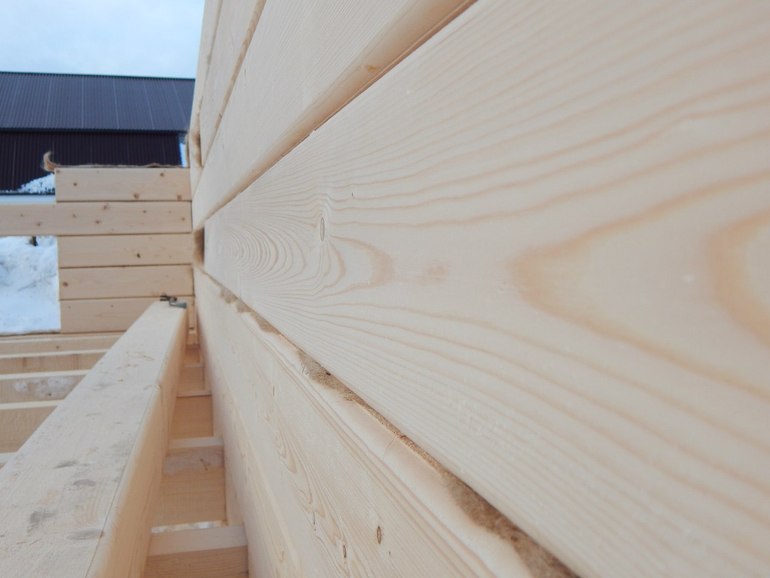 Окорка бревна осуществляется сильным напором воды. Бревно сохраняет свои защитные свойства, имеет благородный золотистый оттенок и свою неповторимую форму. Естественная глянцевая поверхность бревна не требует отделки.