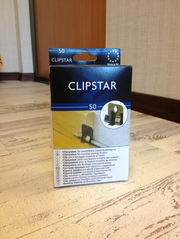 Крепеж для плинтуса Clipstar Клипстар (Италия) упаковка 50 шт. (клипсы+дюбели+саморезы) 500 руб( в магазиннах от 700 руб за штуку)