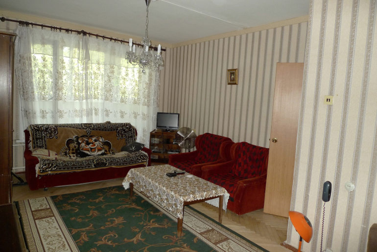 Панельный дом. Чистая простая квартира. На кухне гарнитурная мебель, холодильник, стол, стулья. Санузел раздельный, стиральная машина автомат. Просторная комната, два дивана, стенка, два кресла. Большая застекленная лоджия, окна пластиковые, пол паркет. Чистая уютная квартира, без посторонних запахов. Рассматриваются славяне, один человек или пара, ОТ 30 ЛЕТ, с московской регистрацией, не курящие.