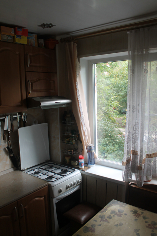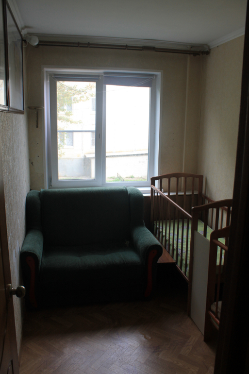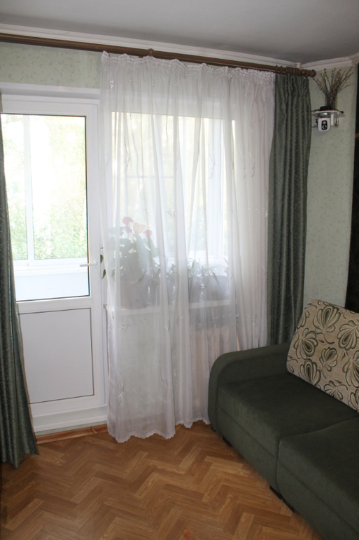 Панельный дом, стеклопакеты, окна на 2 стороны, что позволило разделить легкой перегородкой большую комнату на две. Балкон застеклен. Мебель частично остается (кух.уголок, стенка, небольшой диван-аккордеон).