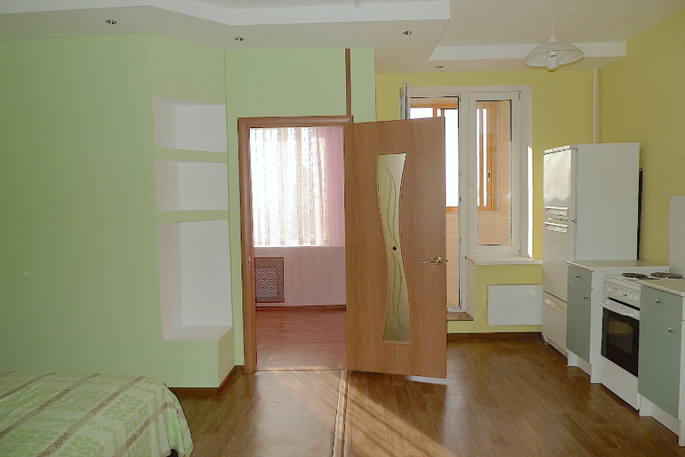 Современная, молодежная квартира. В новом кирпичном доме с закрытой территорией и подземным паркингом ( своего места в паркинге нет) НЕ СТАНДАРТНАЯ планировка квартиры, СТУДИЯ, основная часть квартиры объединена с кухней, и небольшая комната отдельно. Ремонт свежий, но НЕ Евро. На полу линолеум, кухонный комплект ИКЕЯ. Холодильник и стиральная машина в нормальном рабочем состоянии. Плиту заменят на новую. Кровать по желанию клиента могут убрать. Шкаф находится в прихожей, есть небольшой стенной шкаф при входе. Маленькая комната свободна. квартира идеально подойдёт для пары. С/У раздельный, простой, с ремонтом от строителей. Сдают СТРОГО на длительный срок. Славянской паре. Не курящей без животных. Можно с маленьким ребёнком.