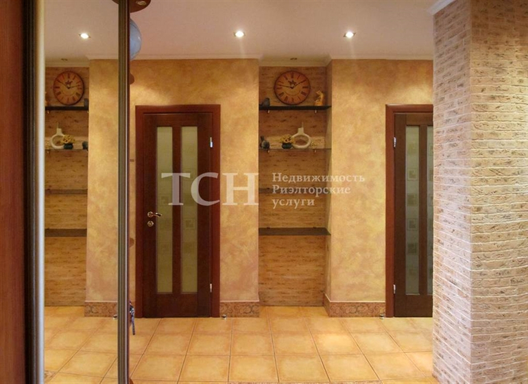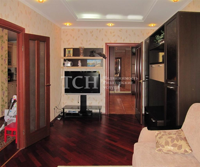 Расположена на 9 этаже 20-этажного монолитно- кирпичном дома. Общая площадь 88,8 метров, жилая 45,3 метра, изолированные комнаты 17,6/14,7/13 метров, кухня-столовая 22,8 метров.