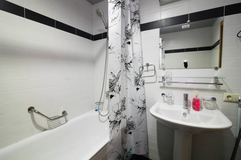 В спальне: двуспальная кровать, большой шкаф-купе.