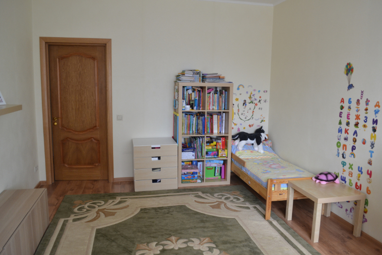 Светлая комната 20 м, кухня 10, 5. Санузел совмещенный. Вместительная гардеробная.