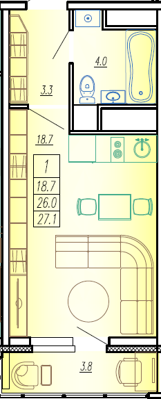 Студия 27,1 кв.м. 2411900 р