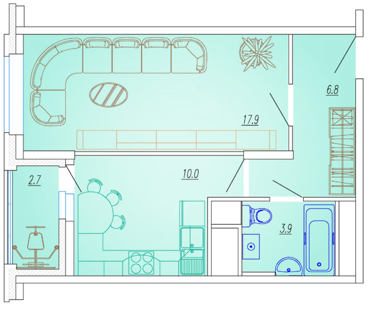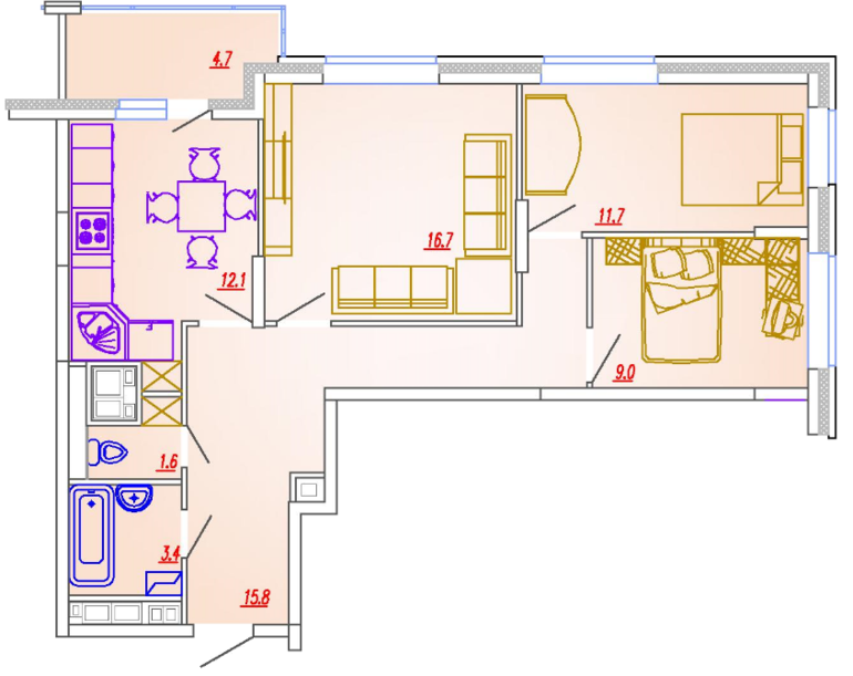 1 комн. 41,1 кв.м. - 3493500 р