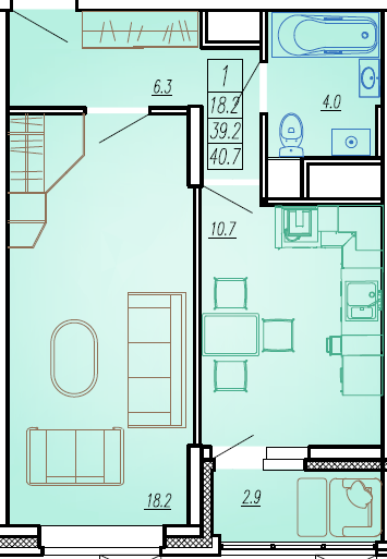1 комн.кв 40,7 кв.м. 3581600 р.
