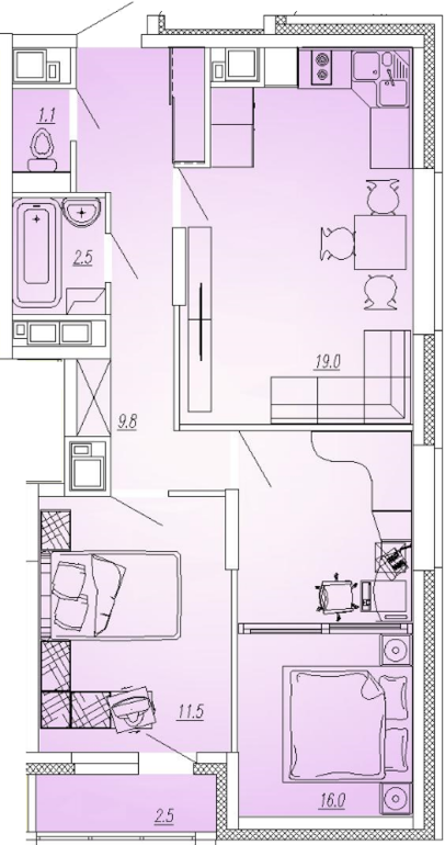 2 комн. 60,8 кв.м. - 5168000 р