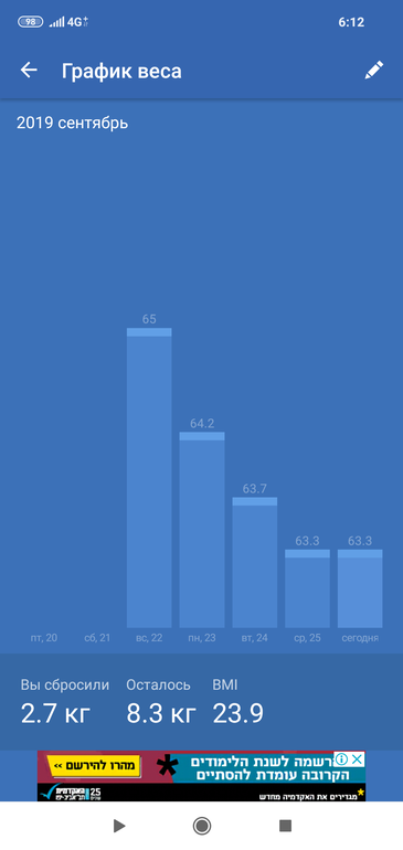 Наконец то вес тронулся. 63.5 а то сначала был 63 потом вернулся на 64 и держался пару дней. Мне аж прям грустно стало.