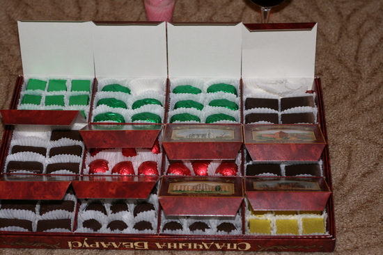 да ладно))) вкусна же)))) там оказались конфеты, которые я обожаю- с полосками шоколада сверху, они орнховые!!не грильяж или мягкий грильяж, а ...не знаю как описать, много орехов перемолотых в нуге что ли..