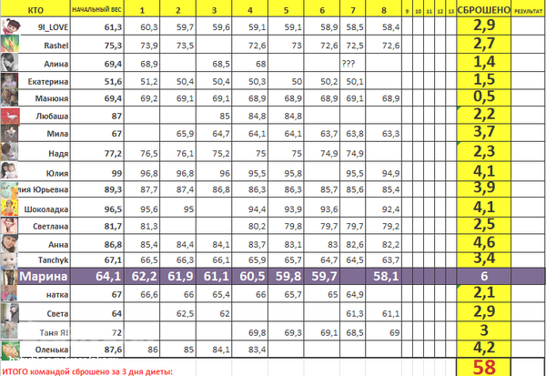 Наш лидер Марина бьет все рекорды - 6 кг за 8 дней!!!! О даёт!!!!