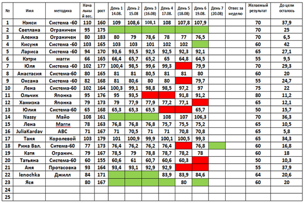Еще раз напоминаю не забывается каждый день отчитываться по весу и указывать номер по таблице.