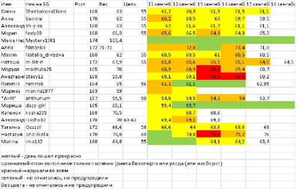 Отчеты-результаты о питании, о тренировкахПроверяем табличку: