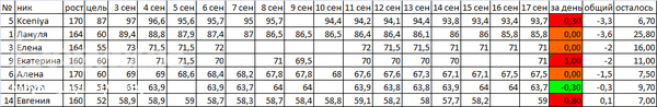 Доброе утро! Не нашла я таблички за  последние два дня, так то очитываюсь здесь: на 20.09 вес 84,7!!!!! Целый кг долой! УРА!!!!!! Я уж думала, что цифру 84 только на следующей неделе увижу, ан нет! УРА-УРА-УРА!!!!!!