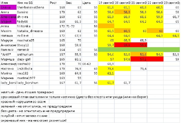Отчеты-результаты о питании, о тренировкахПроверяем табличку: