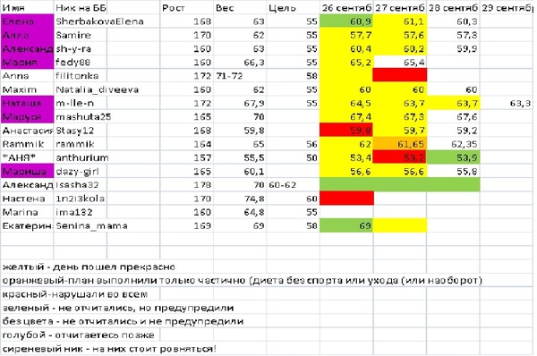 Отчеты-результаты о питании, о тренировкахПроверяем табличку: