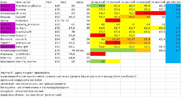 Самое главное, что я хотела бы сказать - без вас я бы не справилась! Меня табличка не просто дисциплинирует, а буквально заставляет каждый раз думать, что и когда я ем, и поднимать свою попу по вечерам от компьютера и идти в душ скрабиться-массажироваться.