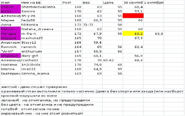 Отчеты-результаты о питании, о тренировкахДевушки, в первую очередь хочу перед вами извиниться - на вчерашние комментарии почти никому не ответила, но в табличку все занесла.