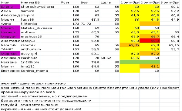 Отчеты-результаты о питании, о тренировкахПроверяем табличку (рано я вчера радовалась, что все отчитываются):