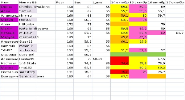Отчеты-результаты о питании, о тренировкахПроверяем табличку: