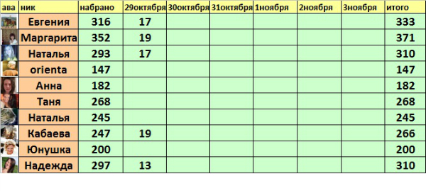 1) занятие с джилиан - 4 б2) количество выпитой воды (если 8 ст) - 1 б3) процедуры по уходу за собой 1 б4) прогулка - 1 б5) дополнительные физ нагрузки - 0 б6) не едим сладкое и мучное после 12 - 10 бИтого 17 баллов
